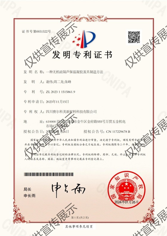 COPYRIGHT? 四川保溫材料生產(chǎn)廠家_成都隔熱保溫材料_無機硅聲能凝膠_硅基物保溫材料_ 智能調(diào)光膜-四川賽爾科美新材料科技有限公司 ALL RIGHTS RESERVED 備案號:蜀ICP備2024107709號 技術(shù)支持:安古信息